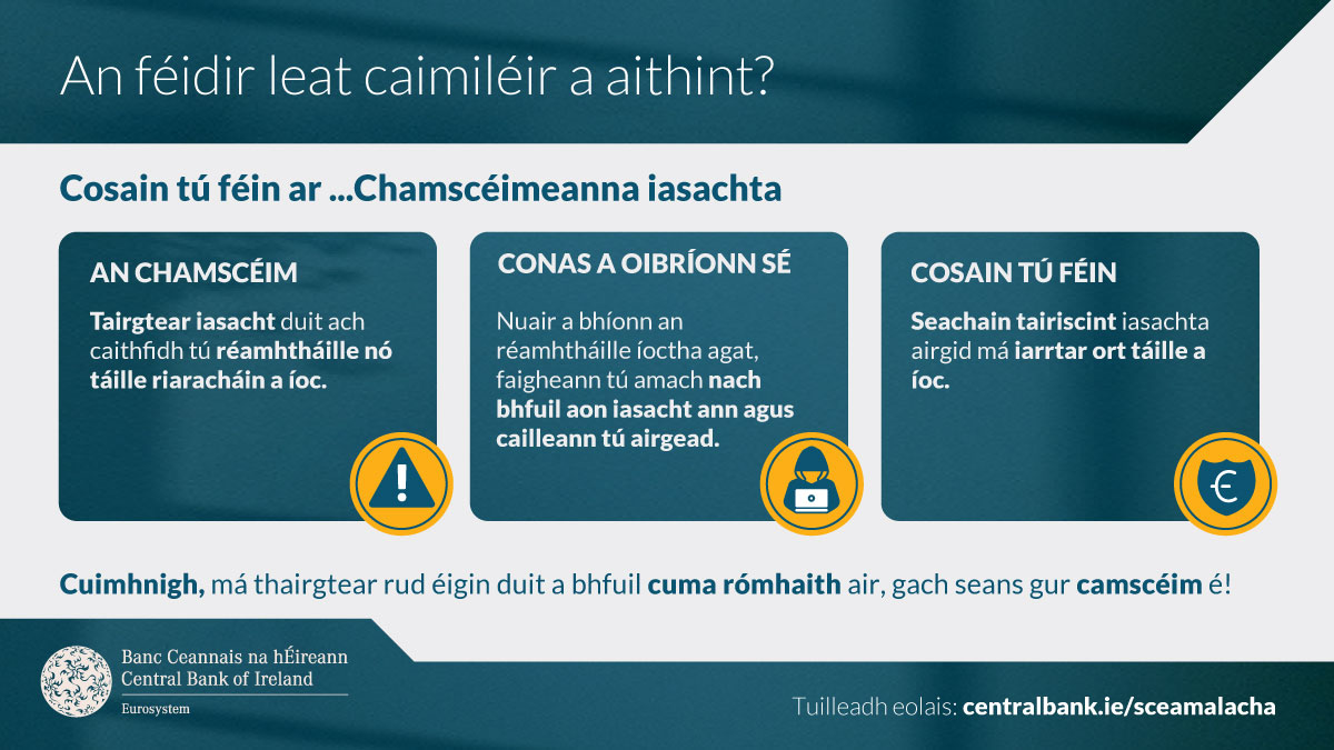 Conas is féidir leat tú féin a chosaint ar chamscéimeanna fioscaireachta, smioscaireachta agus glaoscaireachta?